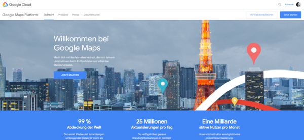 Um sich bei der Google Maps Platform anzumelden, klicke einfach folgenden Link: