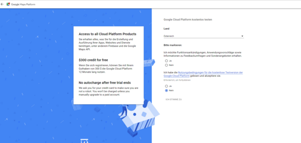 Anmeldung bei der Google Maps Platform