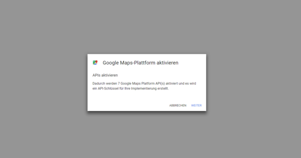 Wird kein solches Konto erstellt, blockiert Google die Schnittstelle und es kommt daher zu Problemen mit der Darstellung der Google Maps Karten auf der Website.